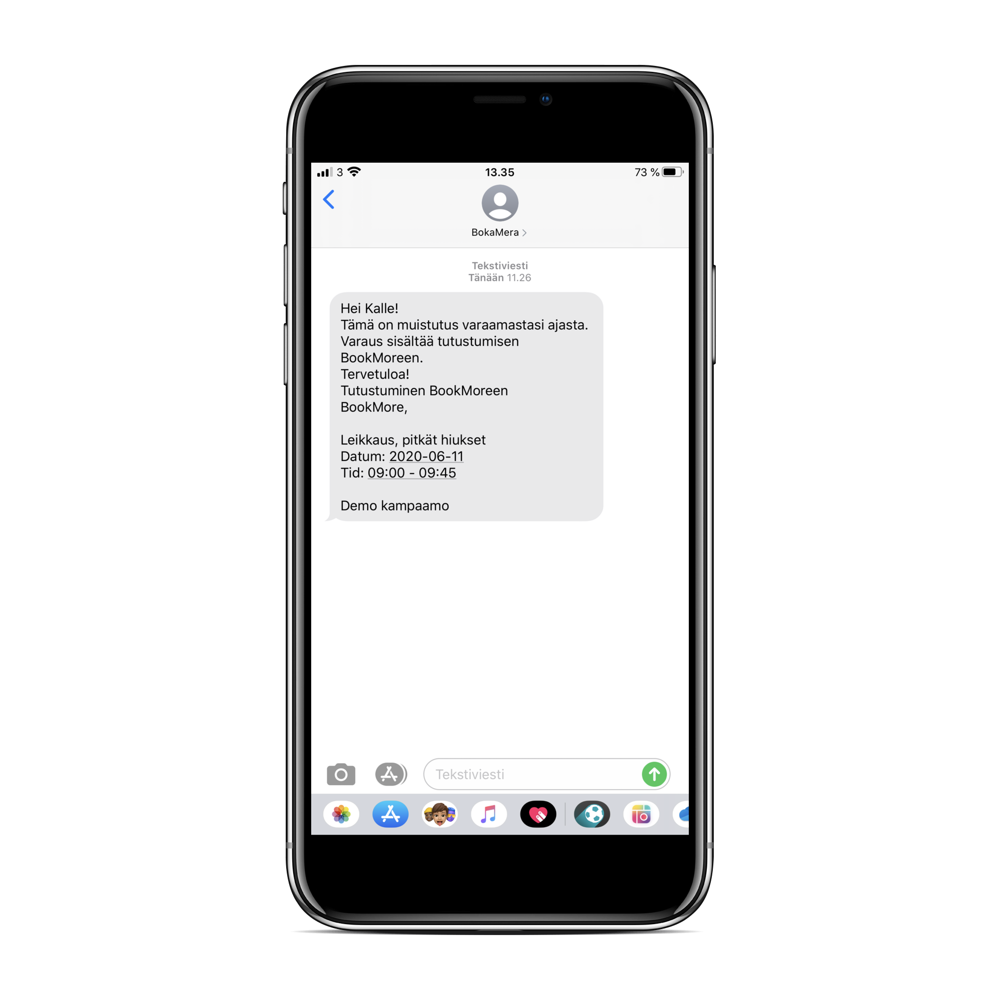 Voit kokeilla Bookmoren demoversiota , jossa ovat kaikki samat toiminnot kuin varsinaisessa järjestelmässä. Voit ilmaiseksi tehdä koevarauksia ja kokeilla järjestelmää. Jos sinulla on erityistoiveita, voit aina olla yhteydessä tukeemme https://bookmore.fi/book-demo .