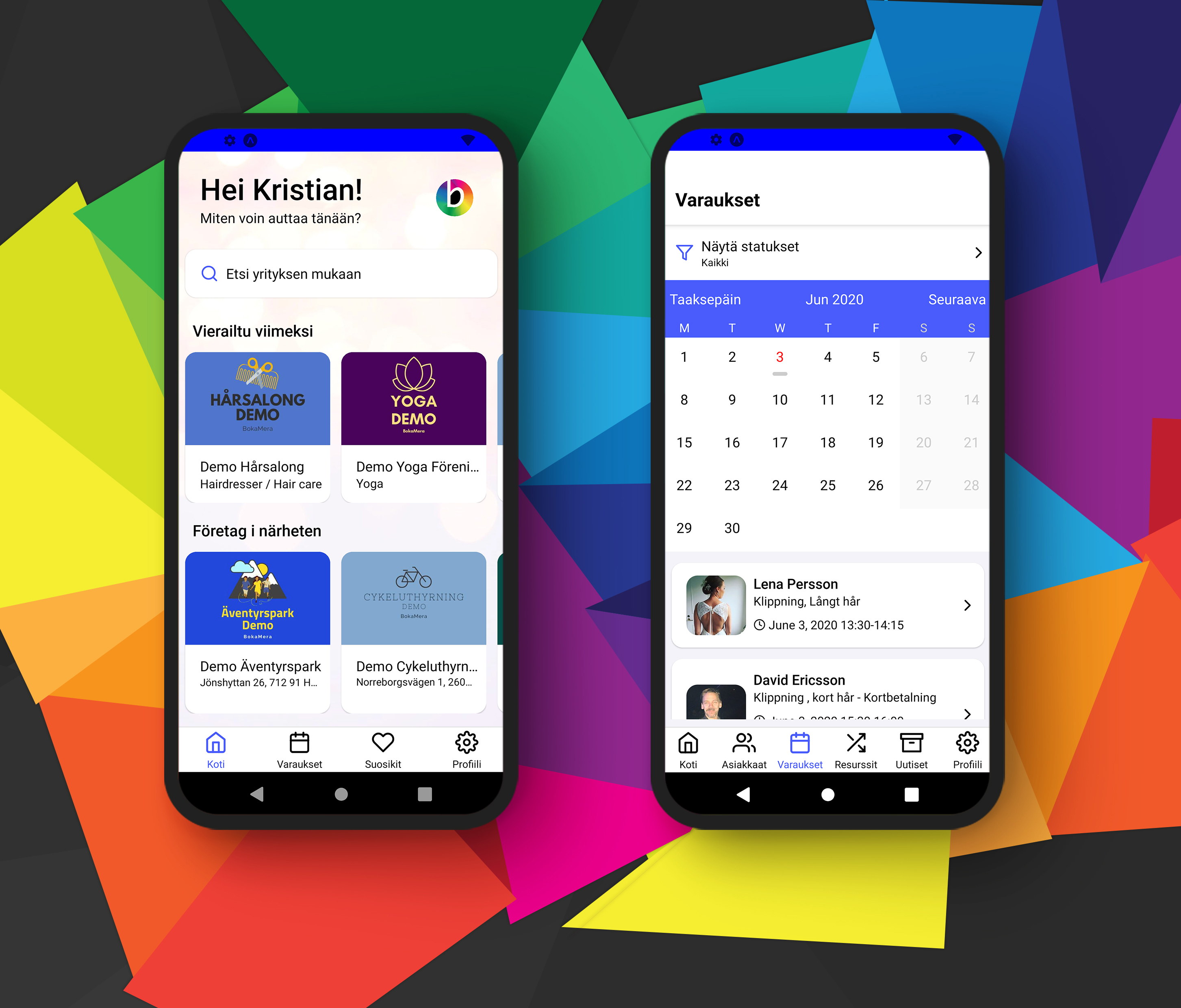 Bookmore tarjoaa sovellukset sekä Android että iPhone-puhelimille. Sovelluksissa jäsenet voivat katsella tulevia varauksiaan ja sekä varata että peruuttaa aikoja. Kaikki tarvittava tieto on helposti ja kätevästi saatavilla! Varausjärjestelmän ylläpitäjänä sinulla on kaikki sovelluksen toiminnot käytettävissäsi. Näet kaikki senhetkiset varauskohteet, riippumatta siitä, missä olet ja voit auttaa jäseniä heidän varausten kanssa.
